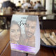 Add elegance and personalization to your wedding tables with this custom photo wedding table number, featuring a romantic couple photo with beautifully styled text elements. The top third of the design displays your table number in black calligraphy script with a white drop shadow, ensuring clarity and readability against the photo.