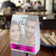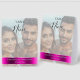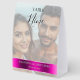 Across the bottom third, a chic magenta colored band creates a polished, modern contrast. Here, your names and wedding date appear in clean white with black drop shadow lettering for a timeless, sophisticated finish. Both the upper and lower text areas are fully editable, and the background photo can be replaced with any picture you choose.