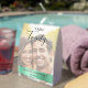 Add elegance and personalization to your wedding tables with this custom photo wedding table number, featuring a romantic couple photo with beautifully styled text elements. The top third of the design displays your table number in black calligraphy script with a white drop shadow, ensuring clarity and readability against the photo.
