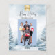 Watercolored winter forest as background. Personalise and add your business logo, name and a photo. Happy Holidays written with a trendy handlettered style script.