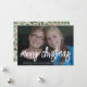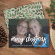 Green botanical leaves and berry pattern on back. Use one picture with the subject preferably in the middle or towards the top. A darker photo works better with this white type overlay. Make a unique and trendy Merry Christmas greeting with a trendy and joyful pattern on the back.