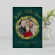 Share heartfelt holiday wishes with this elegant Christmas card featuring a gold wreath of winter greenery framing a single family photo. The rich green velvet background adds a classic, luxurious touch, while pine, evergreen, and seasonal berries bring in traditional charm. The back offers space for a personal message, making it the perfect blend of style and sentiment for the season. A beautiful way to send joy to family, friends, or loved ones. Customize yours today and create a holiday greeting that feels timeless and full of warmth!