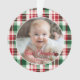Cute Baby's First Christmas holiday photo ornament features a rustic pattern in classic, traditional Christmas colours of red, green. Edit in a minute, upload your favourite photo and enter your data. Perfect for your new little one!