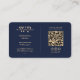 Photographer Cinematographer Film Producer Camera Shutter Lens Elegant Navy Blue Gold Monogram business card with QR code
