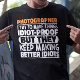 Funny Photographer Sayings "Photographer I Try To Make Things Idiot Proof But They Keep Making Better Idiots". Grab this Funny Photographer design as a funny gifts for an awesome mum, dad or friend.
