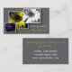 Three sunflower photos are featured on this steel grey business card.