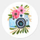Photography Lovers Vintage Camera and Flowers Classic Round Sticker