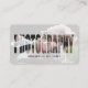 Trendy, modern photography business card. Design features your photo, cut off ''photography'' script, name on the front. Personalize further with your details on the back.