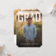 This modern graduation design features a clean, magazine-style layout with a full-bleed portrait photo on the front and bold, oversized “GRAD” typography for a confident, celebratory look. The soft natural background and warm lighting give the design a polished yet approachable feel, making it suitable for both high school and college graduates. On the back, the design transitions into a graduation announcement combined with a party invitation, including space for an additional photo and personalized event details. The overall aesthetic is timeless and versatile, perfect for sharing graduation news while inviting friends and family to celebrate this milestone.