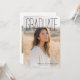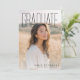 This elegant graduation announcement features a modern, minimalist front design with a full-bleed portrait photo and tall, refined typography that highlights the graduate’s achievement. The neutral color palette and airy layout create a timeless, editorial look that feels both sophisticated and celebratory. On the back, a thoughtfully arranged photo collage showcases multiple senior portraits, paired with a personalized invitation message. Custom details include the graduate’s name, school, class year, event date, time, location, and RSVP information, making this design perfect for announcing a graduation and inviting family and friends to celebrate. Ideal for high school or college graduates who want a polished, contemporary announcement with a personal touch.