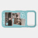 This decorative cellphone case features a beautiful light teal blue green color. It offers ample space for customization with up to three pictures and limited text of your choice. The design is adorned with cute hearts and the sweet quote "We Love You" in an elegant, stylish handwritten calligraphy font. This unique keepsake makes a perfect gift for a birthday, anniversary, Mother's Day, Valentine's Day, or as a Christmas stocking stuffer. The case is available for various iPhone models, including the iPhone 6, 7, and 8 Plus, as well as the X, XR, XS, 11, 12, 13 Mini, 14, 15, 16, and 17 Pro Max.