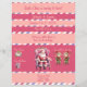 A striped pink, blue and purple design shines through the lines and on the back of the flyer.