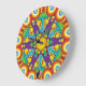 This Kaleidoscope clock serves as a mandala for meditation, a focal point for the imagination, and as a functional timepiece. Kinetic Collage kaleidoscope compositions are created from psychedelic light show screen capture images. 1/30th of a second captured in space and time. Each unique image’s name is based on some special characteristic of the composition, or on whimsy. If you gaze at this Kaleidoscope clock long enough, time may stand still. . . Brilliant colors paint the screen in projected syncopation. Exotic shapes shift and careen, spinning vision with sensation. A crazy scene and that’s a fact. Making sense seems out of reason. But when you snap a slice intact — there’s potential for cohesion. Copy and paste it, flip and seal. Repeat until the arc’s complete. Construct it so it will reveal a bright kaleidoscopic treat. Thus from chaos, a balanced form. Perfect in pleasing symmetry. If only life would so conform, we all could live in harmony…Please note: If you wish to have any Zazzle product imprinted with one of my arts, let me know your preferences and I’ll make it happen. kineticcollage@cox.net