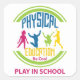 Physical Education...Be Cool, Play in School- large square-shaped stickers on white