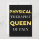Physical Therapist Queen Of Pain design. This is a short funny quote which is great as an appreciation gift idea for Physical Therapists. Also suitable as Physical Therapist Gifts.