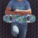 A fun geeky design with physics and math symbols in colours of blue, turquoise, black and a touch of purple. This skate board is perfect for fans of physics and mathematics or if you just want your baby look smart.