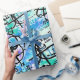 A fun Multicolored pattern with physics and math equations symbols in colours of blue, turquoise, black and a touch of purple. A great warping paper for the geek in your life.