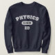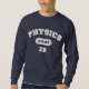 School athletic department style graphic, for science majors: "Physics Ed," with Pi in the centre oval. Age-distressed, on t-shirts, jerseys, sweatshirts, gifts.
