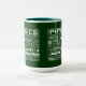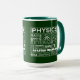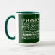 Physics Mug. With the following words at the back - Physics, Acceleration, Mass, Particles, Thermodynamics, gravity, hawking, big bang, black holes, electromagnetic, maxwell, quantum mechanics, strings, radiation, tesla, force, e=mc2, gas, atom, proton, nuclear, hertz, radiation, gamma , absolute 0, nanotech, orbit, frequency, weight