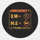 Pi 3.14 Pie Coincidence I Think Not Funny Pi Day Classic Round Sticker