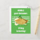 Postcard with a smiling, nearly-whole, green, apple pie cartoon illustration. The numbers for Pi are visible for several decimal places. This postcard lets everyone know that Pi Day is coming. Give people time to grab their favourite calculator, buy some extra flour, and choose the perfect pie recipe.