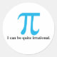 Humourous stickers feature a large blue pi symbol with funny quote "I can be quite irrational."