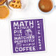 These unique purple Pi Day napkins for math teachers, students and scientists feature a Pi symbol design inside a piece of pie and Happy Pi Day greetings. It says "Math is a piece of pie that matches perfectly a cup of coffee" and is decorated with illustrations. You can change the background colour before ordering.