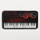 Modern black and white keyboard and red treble clef. Optional monogram