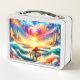 This is a standard metal lunchbox that appears to work just fine. We designed this box ourselves with an uploaded photo and custom text on the front and back. It looks absolutely beautiful except the front of the lunchbox is not centered like it shows in the photo. The print borders don't align with the inset flat part of the box where the preview photo online showed it perfectly centered in there. The back looks nice and centered though.