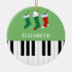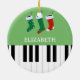 Grand piano keys Christmas tree ornament for a piano player, pianist, student, teacher, musician, instructor, kids, friends, etc. A black and white piano key with three Christmas stockings on a green backdrop. Elegant personalised winter Holiday decoration gift idea for him or her. Cute Christmas accessories for friends and family.