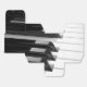 A close-up of the keys of a piano keyboard, the keys a smooth and shiny white and black, and the piano itself in a glossy black lacquer. The perfect gift or look for a musician, composer or songwriter.