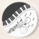 Classic black and white keyboard with a curved flair. Added music notes add a festive look.
