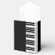 A graphic design of a piano keyboard by artist/designer Charmaine Paulson on a party favour box.  The favour box has text templates for your personalisation. ©2014charmainepaulson