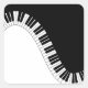 A curving  black and white piano keyboard divides black from white in this whimsical graphic design that is sure to delight the musician.