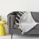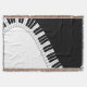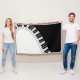 A curving black and white piano keyboard divides black from white in this whimsical graphic design that is sure to delight the musician.