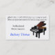 A grand piano against a white background with music notes across the top. Great, clean and professional looking business card for your piano lesson, music lessons, sales and repair business. Use the backside of card for contact information.