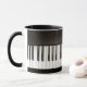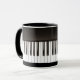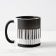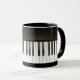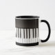 Black and white mug for music lovers with piano keys full-wrap.