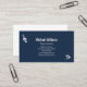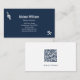 Piano music lessons Navy blue business card, with a white treble and bass clef design. With customisable lettering, you customise with your own information. You also add your website to allow for connection with a QR code. Great for promoting your music teaching or performing business.