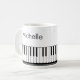 Modern, stylish mug with piano keyboard and music notes in black and white personalised with your name in a handwritten script. Ideal for music teachers, musicians and music professionals. CHANGES: You can change the white background colour or the text font style, colour, size and placement by clicking on EDIT for a custom look or simply delete the sample name to leave that area blank. OPTIONS: The sample is shown in the 11 oz size mug; other sizes and drinkware styles are available on the ordering page