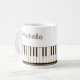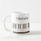 Modern, stylish mug with piano keyboard and music notes in black and white personalised with your name in a handwritten script. Ideal for music teachers, musicians and music professionals. CHANGES: You can change the white background colour or the text font style, colour, size and placement by clicking on EDIT for a custom look or simply delete the sample name to leave that area blank. OPTIONS: The sample is shown in the 11 oz size mug; other sizes and drinkware styles are available on the ordering page