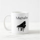 Modern, stylish mug with piano keyboard and music notes in black and white personalised with your name in a handwritten script. Ideal for music teachers, musicians and music professionals. CHANGES: You can change the white background colour or the text font style, colour, size and placement by clicking on EDIT for a custom look or simply delete the sample name to leave that area blank. OPTIONS: The sample is shown in the 11 oz size mug; other sizes and drinkware styles are available on the ordering page