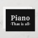A funny Piano slogan design in white ink on dark background that says "Piano - That Is All".