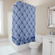 PiccoGrande`s shower curtain, featuring custom text and white Japanese shibori pattern on navy blue background. Easily amend the default text by clicking on the Personalise button.