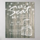 Pick A Seat Not A Side Wedding Sign Poster - Elegant Mason Jar and String Lights on Rustic Wood Background.