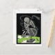 Pick your Brain postcard: this vintage death art is by Gustave Henri Jossot circa 1904 it depicts two comical cartoon skeletons. one smoking a pipe sitting at a table writing a paper, with the second one standing behind him picking thru his brain with one hand while holding the hinged cranium in the other. the art is done in greys and black and white with a green tabletop. It should be noted that This image/work is in the public domain because their copyright has expired. This applies to the United States, where Works published prior to 1923 are copyright protected for a maximum of 75 years. See Circular 1 "COPYRIGHT BASICS" PDF from the U.S. Copyright Office. Works published before 1923 (in this case 1904) are now in the public domain.