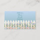 Pretty pastel picket fence and flowers business card in blue, pink, lavender, lemon, green, white and peach. Customisable text on front and back.