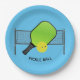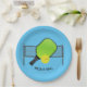 Pickle Ball Pickleball Design Paper Plate with customisable text and background colour.
