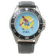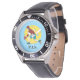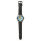 My husband loves the watch, he likes the dial, the graphics, the band, and it keeps perfect time.
