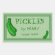 Rectangular stickers come in sheets of four, and are fully customisable. Change the text to anything you like. This sticker features a green background and border, and cartoon pickles in two corners. If you make your own pickles, you deserve special pickle labels, especially if you give your pickles as gifts! Create labels to make beautiful gifts from your kitchen.