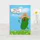 Green pickle on white background with orange glasses and sun hat in the grass and white flowers for 55th birthday.